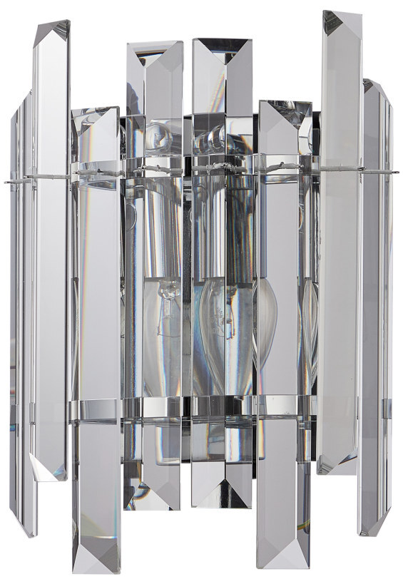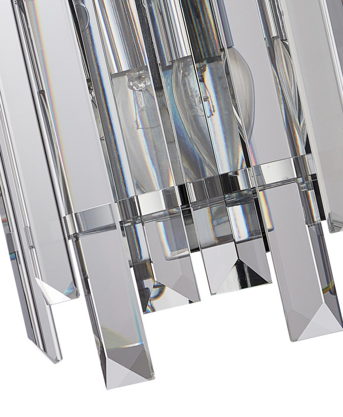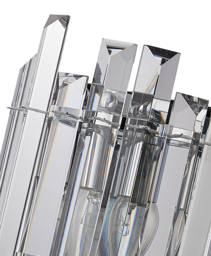Светильник настенный из коллекции Feeriya выполнен из металла, гальванизированного в цвет хрома, и декорирован хрусталем высшей категории прямоугольной формы разных размеров. Изящное преломление света в хрустале придает светильнику индивидуальность. Современная форма и высокое качество светильников идеально подойдут как в классические, так и современные интерьеры.