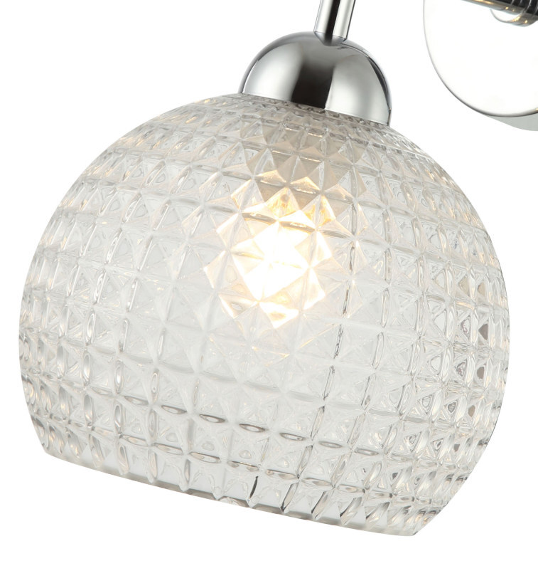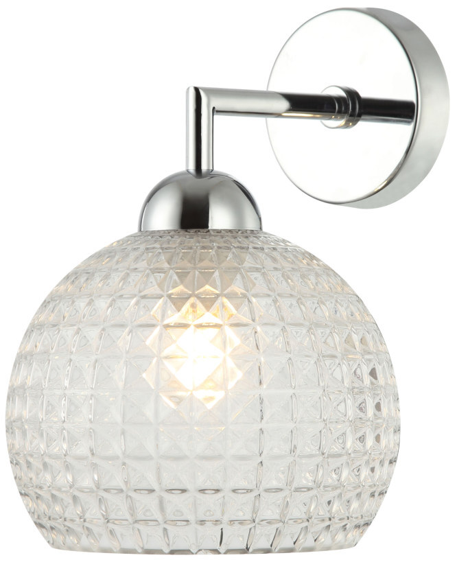 Светильник настенный из коллекции Frency выполнен из металла, гальванизированного в цвет хрома, и декорирован плафоном из прозрачного массивного фактурного стекла. Премиальное качество и неповторимыи? дизаи?н светильников идеально подои?дут в современные и дизайнерские интерьеры.