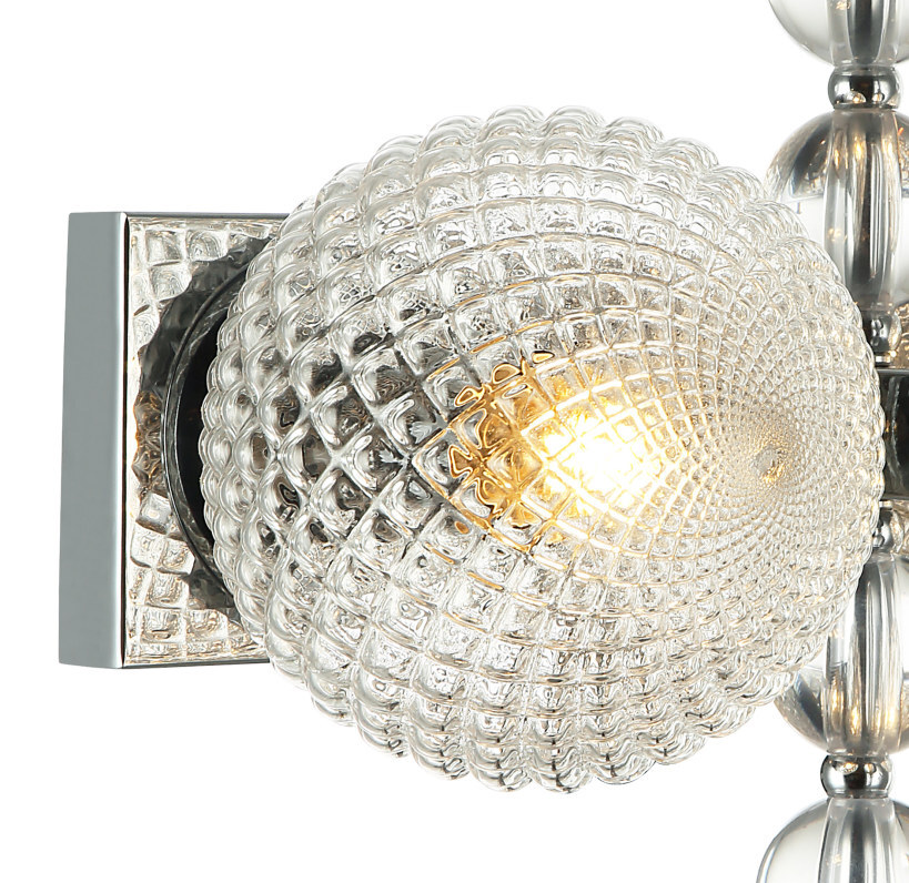 Светильник настенный из коллекции Queenly выполнен из металла, гальванизированного в цвет хрома, и декорирован сферами из прозрачного стекла и плафонами из фактурного прозрачного стекла. Светильник настенный коллекции выглядит стильно и респектабельно. Премиальное качество и неповторимыи? дизаи?н светильников идеально подои?дут в современные и дизайнерские интерьеры.