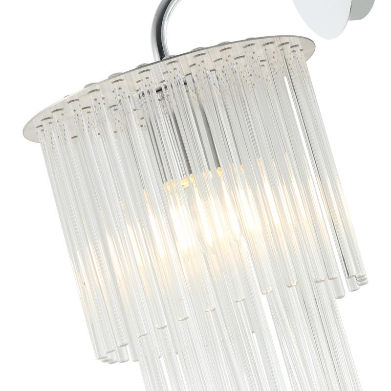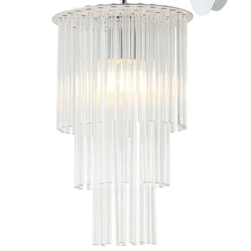 Светильник настенный из коллекции Imposio выполнен из металла, гальванизированного в цвет хрома. Декор из стеклянных прозрачных трубочек крепится на нержавеющую сталь, отполированную до зеркального блеска. Современная форма и высокое качество светильников идеально подойдут в современные и дизайнерские интерьеры.