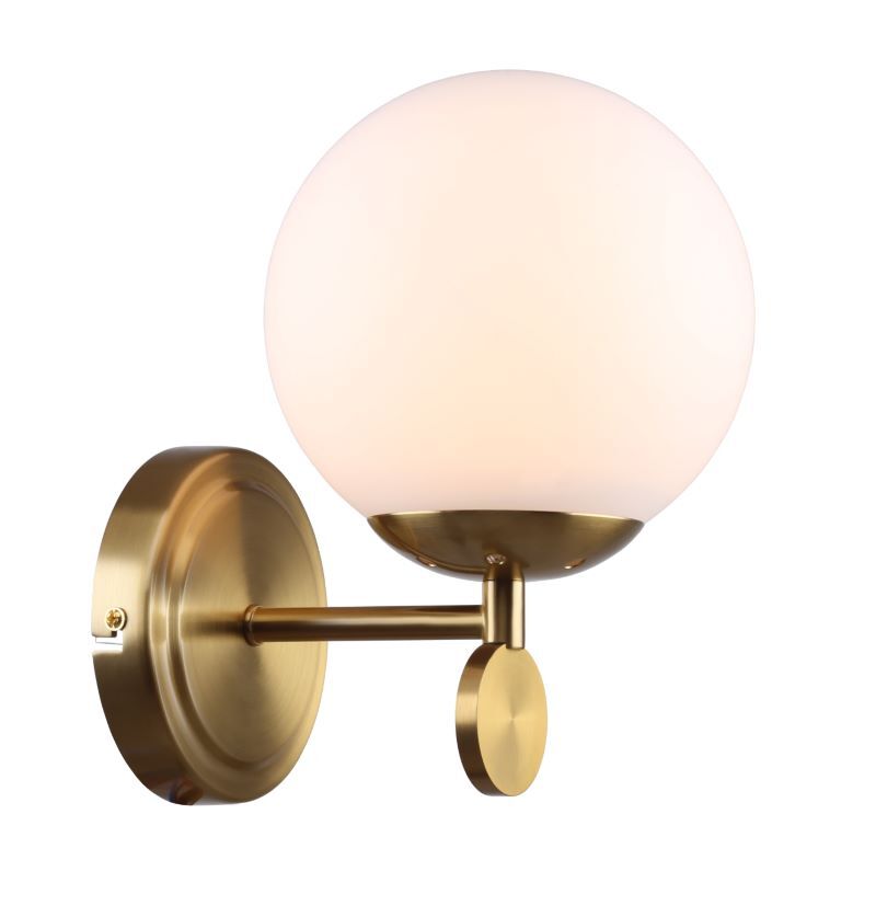 Светильник настенный из коллекции Marsela выполнен из металла, гальванизированного в цвет бронзы, и декорирован белым стеклянным матовым плафоном, а также металлическим медальоном, гальванизированным в цвет арматуры. Премиальное качество и неповторимыи? дизаи?н светильников идеально подои?дут в современные и дизайнерские интерьеры.