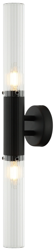 Светильник настенный из коллекции Satori выполнен из металла, окрашенного в черный цвет, и декорирован вытянутым прозрачным стеклянным плафоном с линейным декором. Стеклянные плафоны закрыты с двух сторон для защиты от попадания пыли. Данная серия идеально сочетается с сериеи? WUNDER.