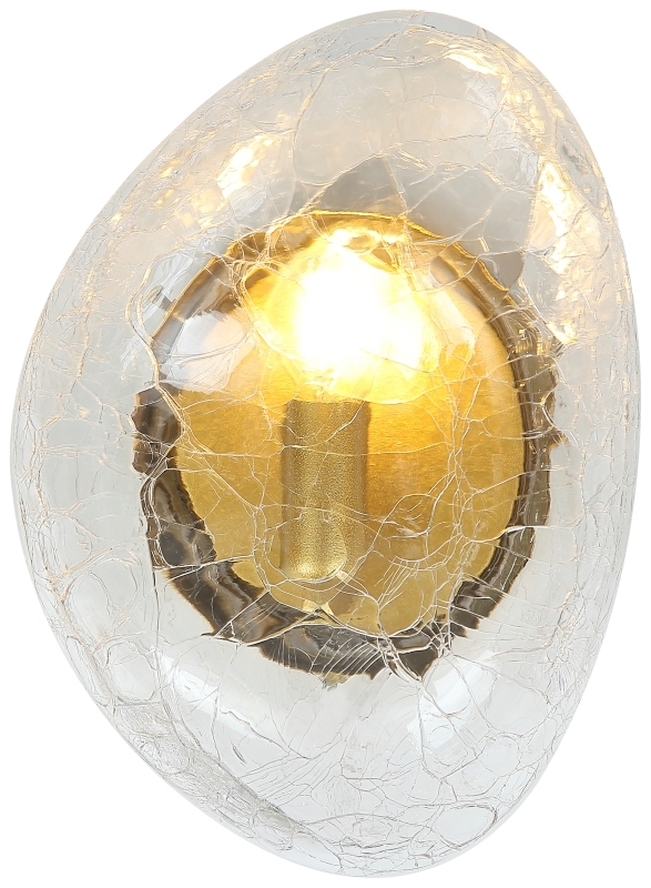 Светильник настенный из коллекции Cosmik выполнен из металла, гальванизированного в цвет бронзы, и декорирован плафоном модной неровной сглаженной формы из прозрачного кракелированного стекла. Благодаря необычному виду стекла светильник коллекции выглядит стильно и респектабельно.