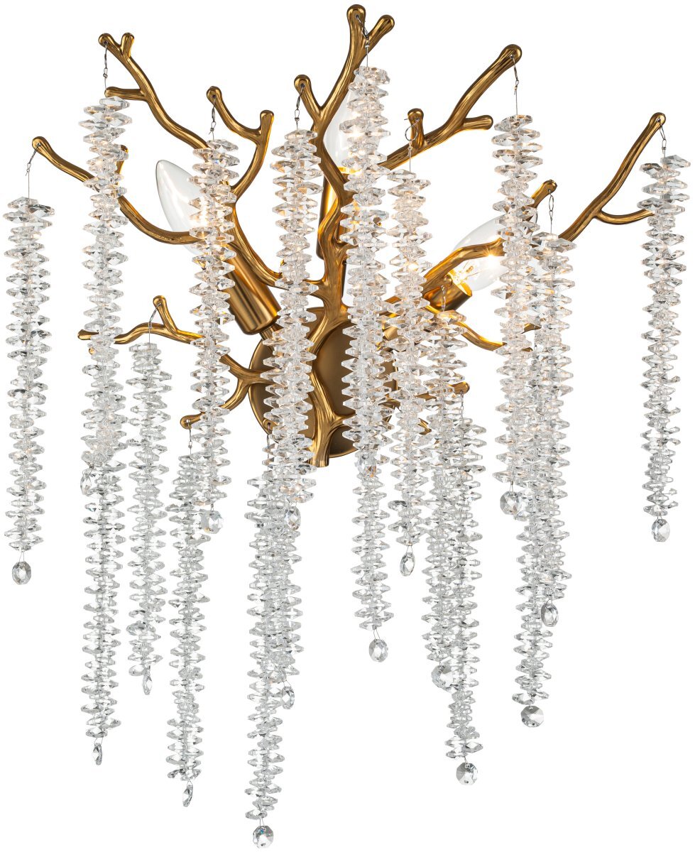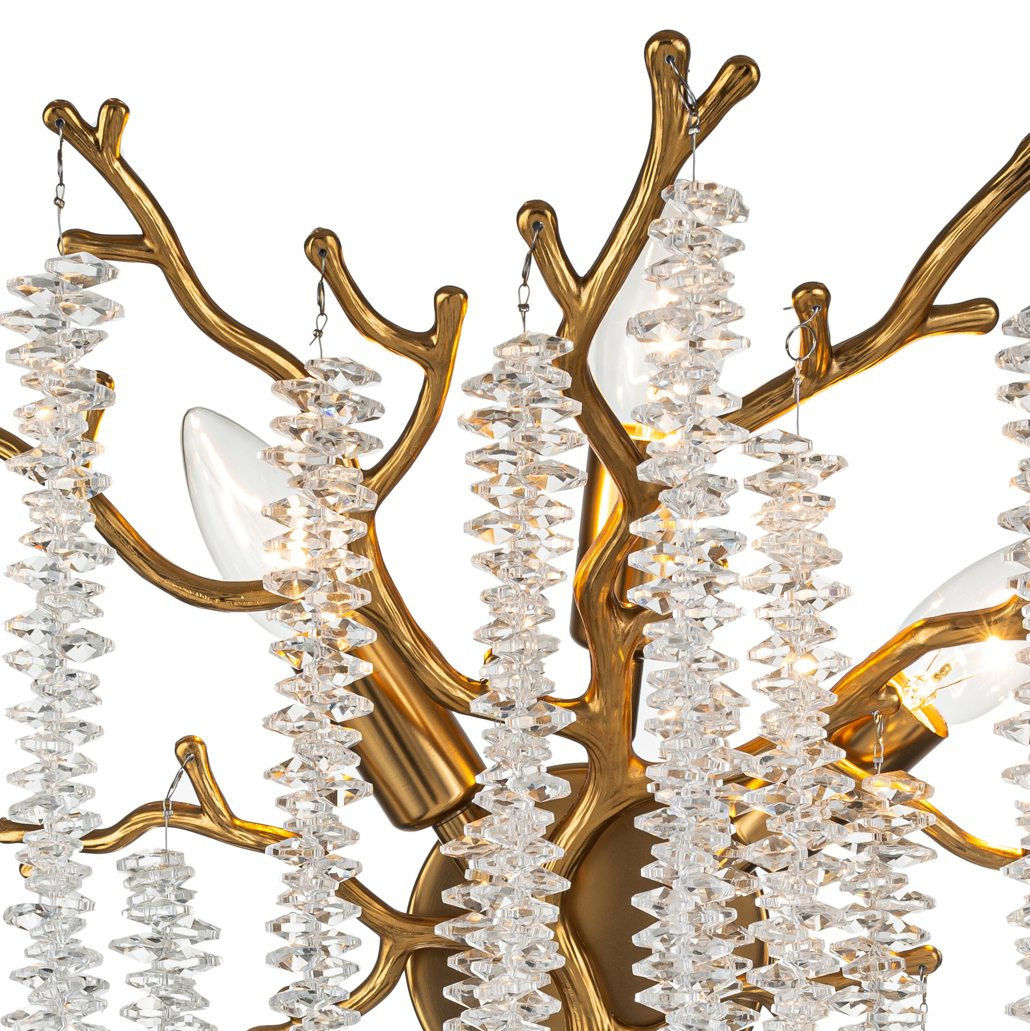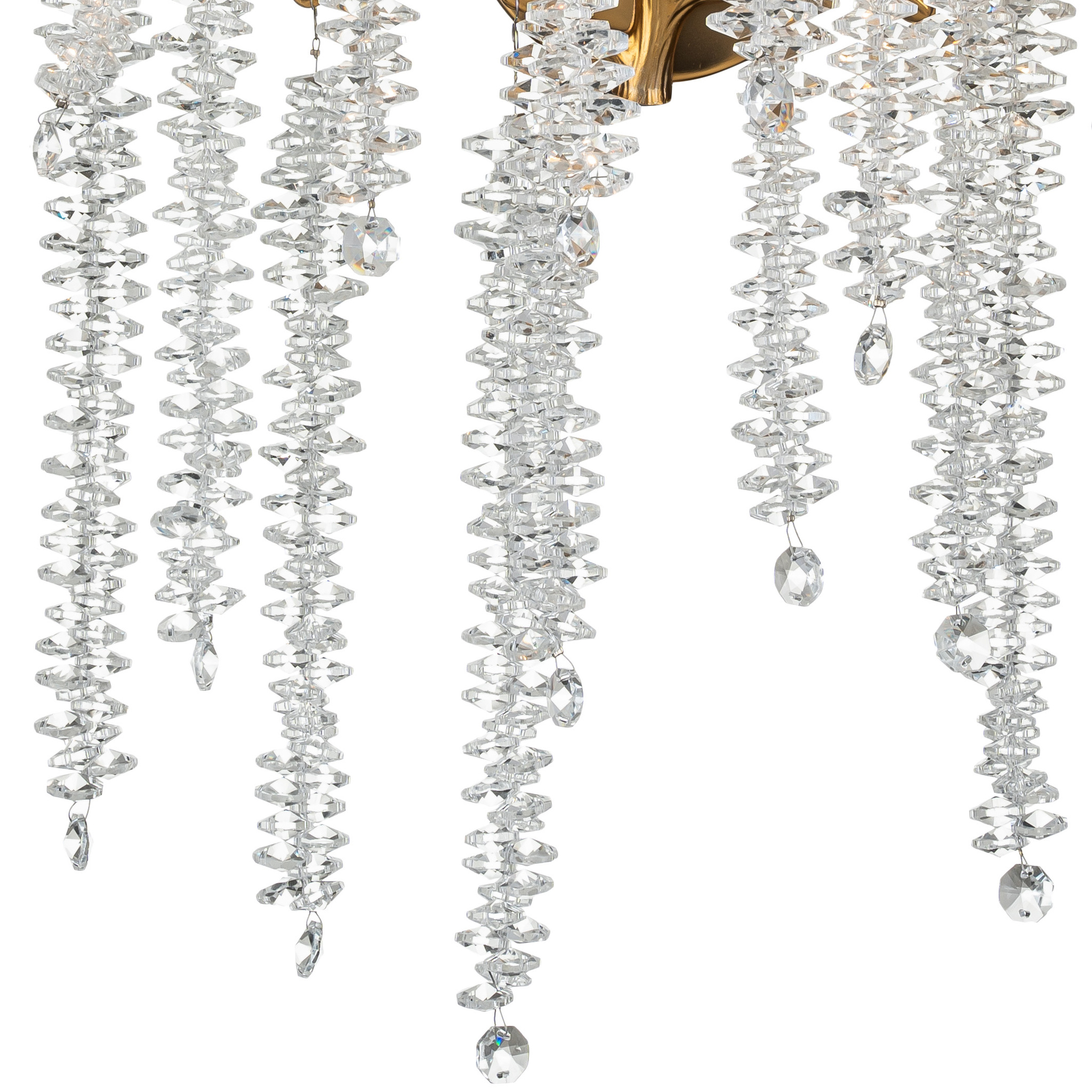 Светильник настенный коллекции EIVA выполнен из сплава алюминия, гальванизирован в цвет бронзы и декорирован гроздьями из хрусталя в форме октагон. Светильники коллекции отличает повышенное содержание хрусталя (18 хрустальных гроздьев) и лампы с цоколем Е14. Из данной коллекции светильников можно сделать индивидуальный заказ любого цвета и размера.