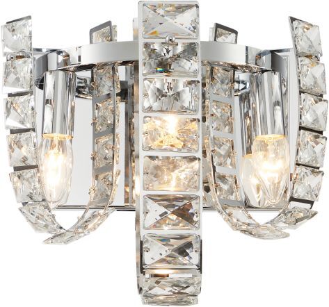 Светильник настенный из коллекции UMIKO выполнен из металла, гальванизированного в цвет хрома, и декорирован оригинальными элементами из хрусталя высокого качества. Хрусталь квадратной формы собран в стильные подвески овальной формы. Современная форма и высокое качество светильников идеально подойдут как в классические, так и современные интерьеры. Из данной коллекции светильников можно сделать индивидуальный заказ любого цвета и размера.