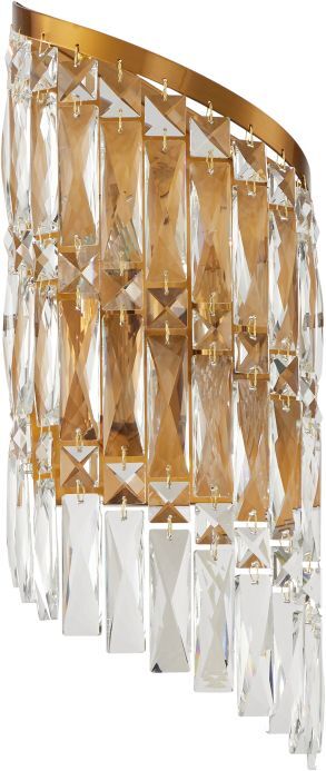 Светильник настенный из коллекции Sapparo выполнен из металла, гальванизированного в цвет бронзы, и декорирован хрусталем вытянутой формы высшей категории. Хрусталь многослойно располагается на изогнутых металлических элементах в виде спирали. Современная форма и высокое качество светильников идеально подойдут как в классические, так и современные интерьеры. Из данной коллекции светильников можно сделать индивидуальный заказ любого цвета и размера.