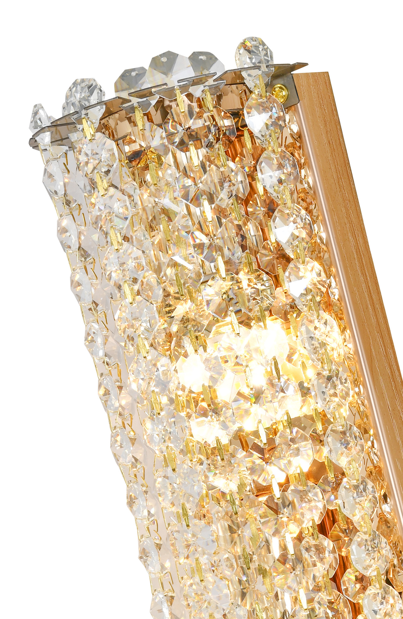 Светильник настенный коллекции Rain of Crystal выполнен из металла, гальванизированного в цвет золота, и декорирован хрусталем высшей категории прозрачного и янтарного цветов. Премиальное качество и неповторимый дизайн светильника идеально подойдут как в классические, так и современные интерьеры. Из данной коллекции светильников можно сделать индивидуальный заказ любого цвета и размера.