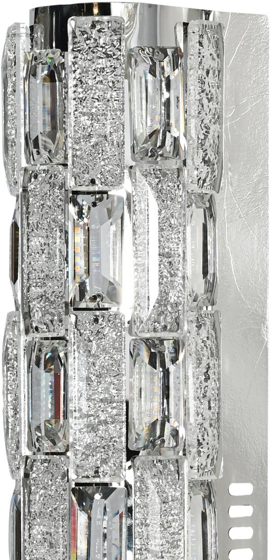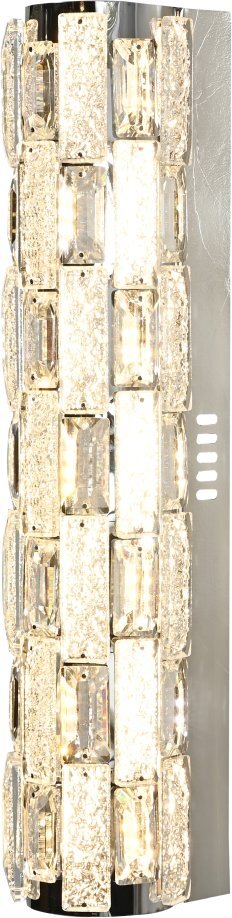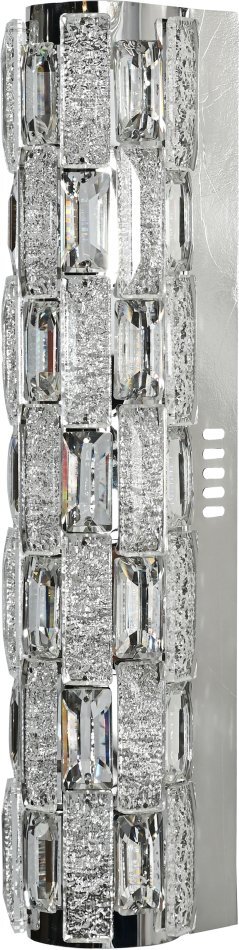 Светильник настенный эксклюзивной коллекции Gabbana выполнен из нержавеющей стали хромированного цвета и декорирован текстурным хрусталем высшей категории. Модель комплектуется пультом дистанционного управления 2,4G и драйвером высокого качества европейского стандарта T?V, обеспечивающим переключение трех режимов световой температуры и диммирование. Современная форма и высокое качество светильников идеально подойдут как в классические, так и современные интерьеры. Из данной коллекции светильников можно сделать индивидуальный заказ любого цвета и размера.