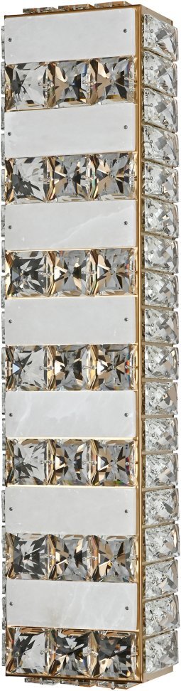 Светильник настенный эксклюзивной коллекции Cherruti выполнен из нержавеющей стали в цвете золота и декорирован испанским камнем и текстурным хрусталем высшей категории. Модель комплектуется пультом дистанционного управления 2,4G и драйвером высокого качества европейского стандарта T?V, обеспечивающим переключение трех режимов световой температуры и диммирование. Современная форма и высокое качество светильников идеально подои?дут как в классические, так и современные дизайнерские интерьеры. Из данной коллекции светильников можно сделать индивидуальный заказ любого цвета и размера.
