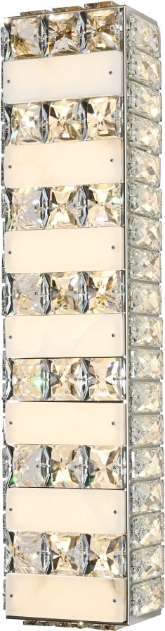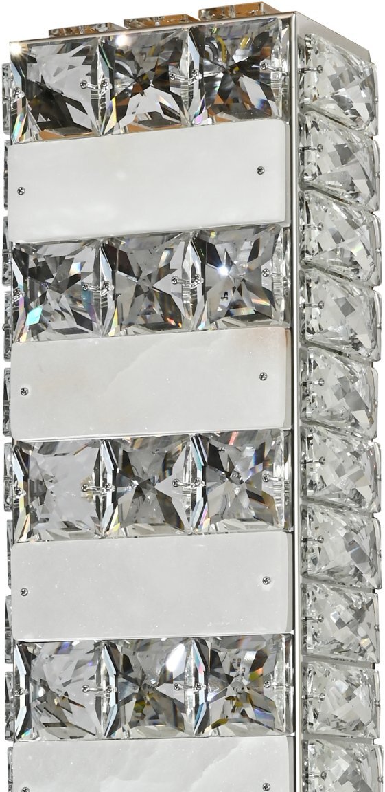 Светильник настенный эксклюзивной коллекции Cherruti выполнен из нержавеющей стали в цвете хрома и декорирован испанским камнем и текстурным хрусталем высшей категории. Модель комплектуется пультом дистанционного управления 2,4G и драйвером высокого качества европейского стандарта T?V, обеспечивающим переключение трех режимов световой температуры и диммирование. Современная форма и высокое качество светильников идеально подои?дут как в классические, так и современные дизайнерские интерьеры. Из данной коллекции светильников можно сделать индивидуальный заказ любого цвета и размера.