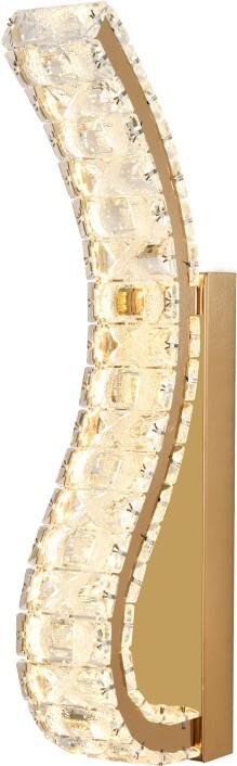 Светильник настенный оригинальной формы коллекции Spayd выполнен из металла золотого цвета и декорирован текстурным хрусталем высшей категории. Модель комплектуется пультом дистанционного управления 2,4G и драйвером высокого качества европейского стандарта T?V. Пульт дистанционного управления обеспечивает переключение трех режимов световой температуры и диммирование. Современная форма и высокое качество светильников идеально подои?дут как в классические, так и современные дизайнерские интерьеры. Из данной коллекции светильников можно сделать индивидуальный заказ любого цвета и размера.