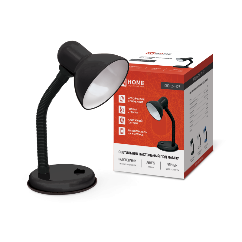Светильник настольный СНО 12Ч-E27 под лампу на основании черн. (кор.) IN HOME 4690612055466