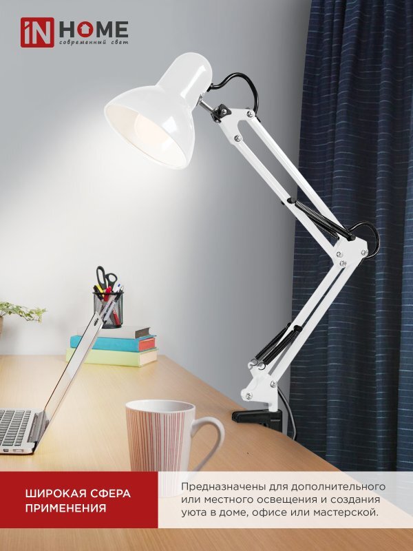 Светильник настольный СНО 15Б 60Вт E27 230В под лампу на основании бел. (кор.) IN HOME 4690612012896