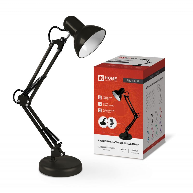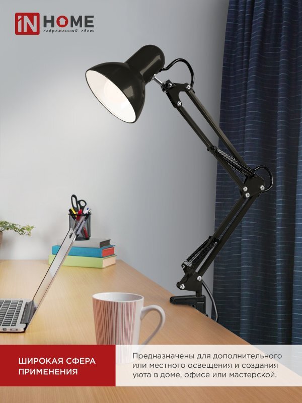 Светильник настольный СНО 15Ч 60Вт E27 230В под лампу на основании черн. (кор.) IN HOME 4690612012902