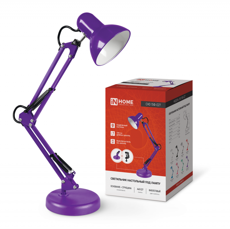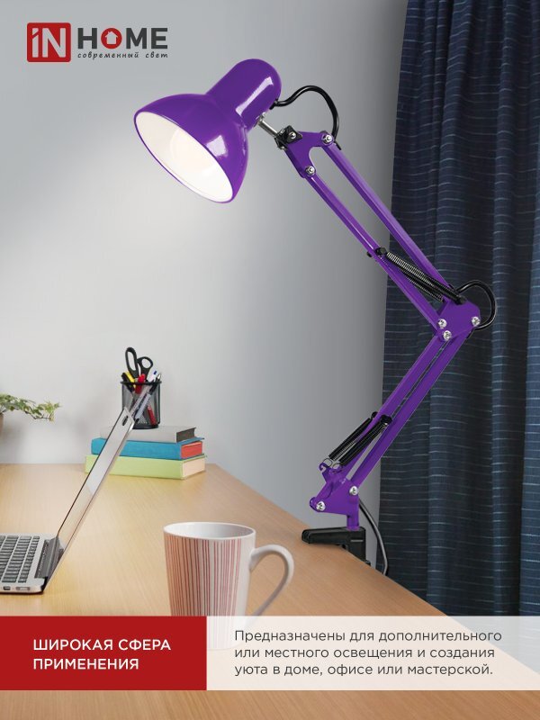 Светильник настольный СНО 15Ф 60Вт E27 230В под лампу на основании фиолет. (кор.) IN HOME 4690612035871