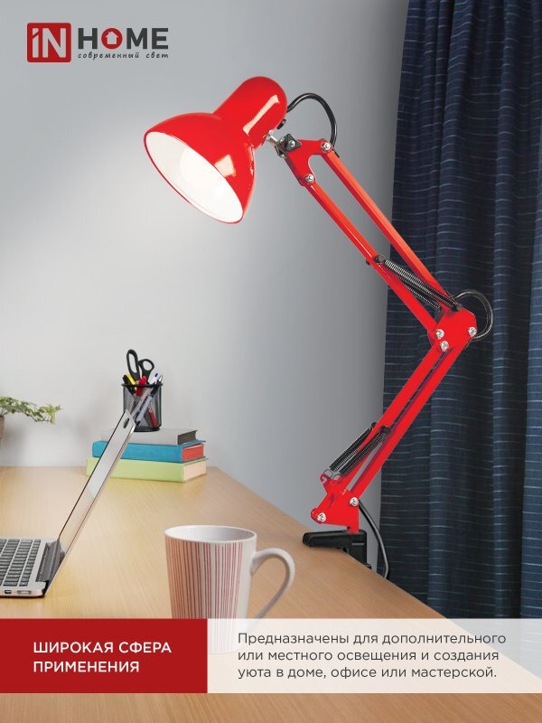 Светильник настольный СНО 15К 60Вт E27 230В под лампу на основании красн. (кор.) IN HOME 4690612035833