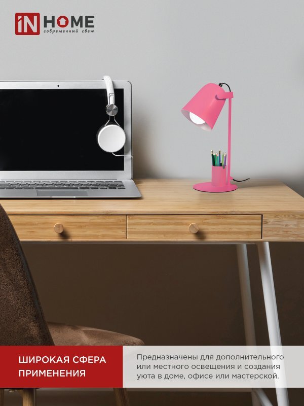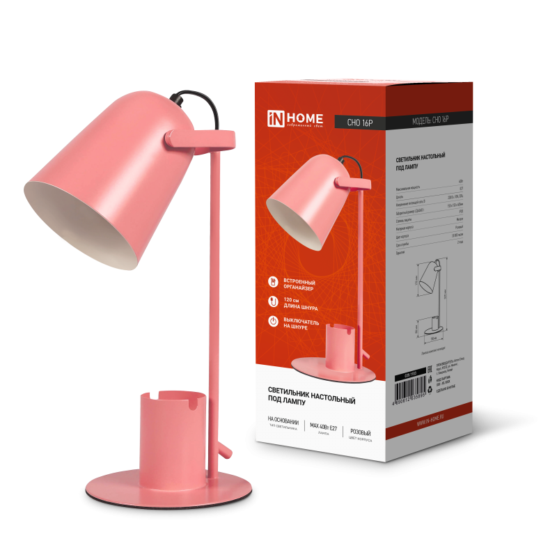 Светильник настольный СНО 16Р 40Вт E27 230В под лампу на основании с органайзером роз. (кор.) IN HOME 4690612035895