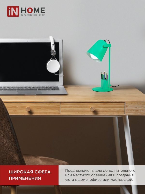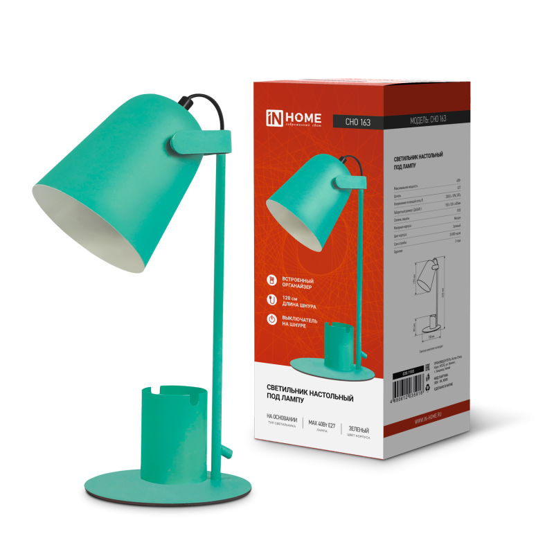 Светильник настольный СНО 16З 40Вт E27 230В под лампу на основании с органайзером зел. (кор.) IN HOME 4690612035918