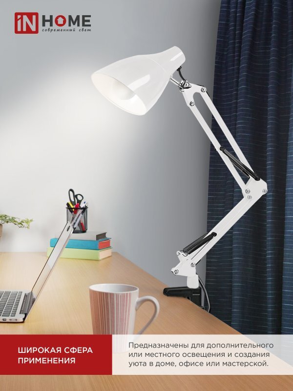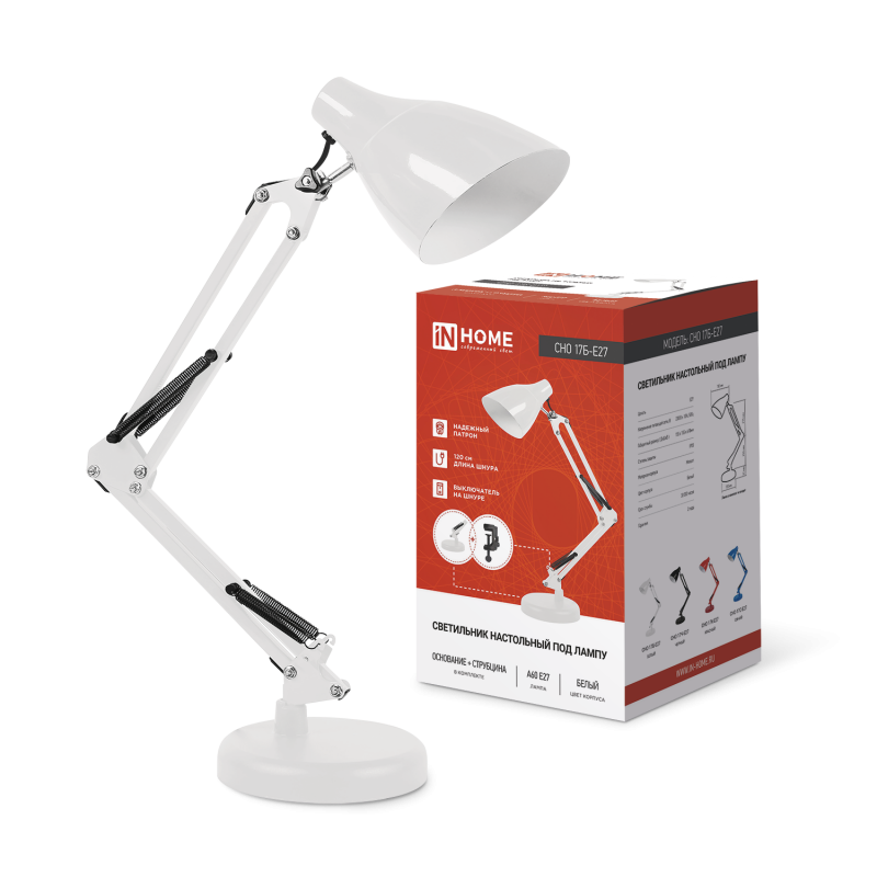 Светильник настольный СНО 17Б 60Вт E27 230В под лампу на основании бел. (кор.) IN HOME 4690612037226