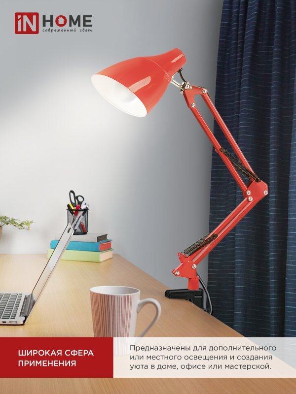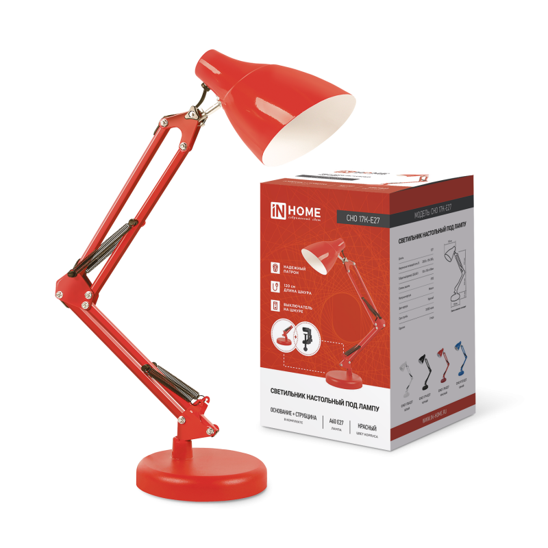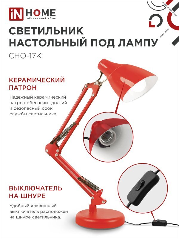 Светильник настольный СНО 17К 60Вт E27 230В под лампу на основании красн. (кор.) IN HOME 4690612037257