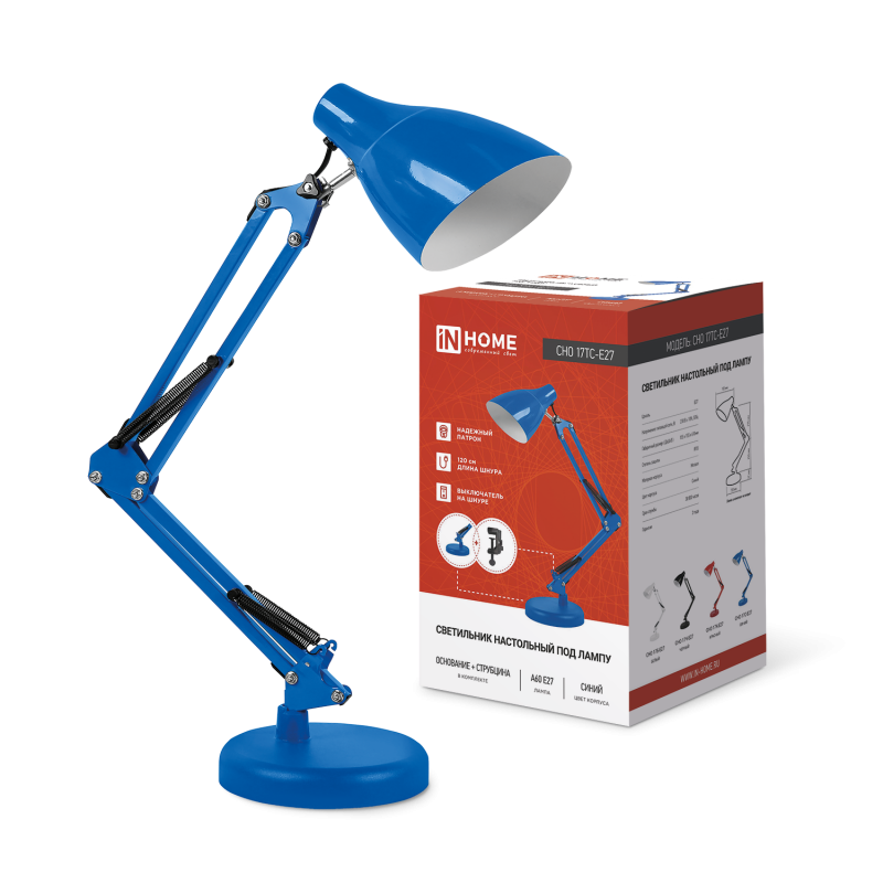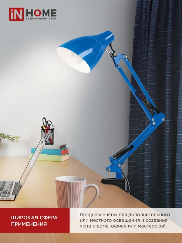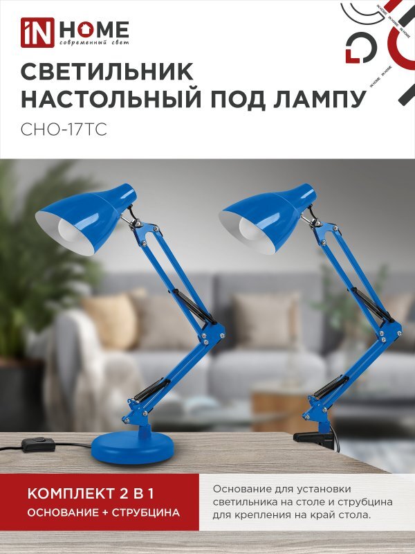 Светильник настольный СНО 17ТС 60Вт E27 230В под лампу на основании син. (кор.) IN HOME 4690612037264