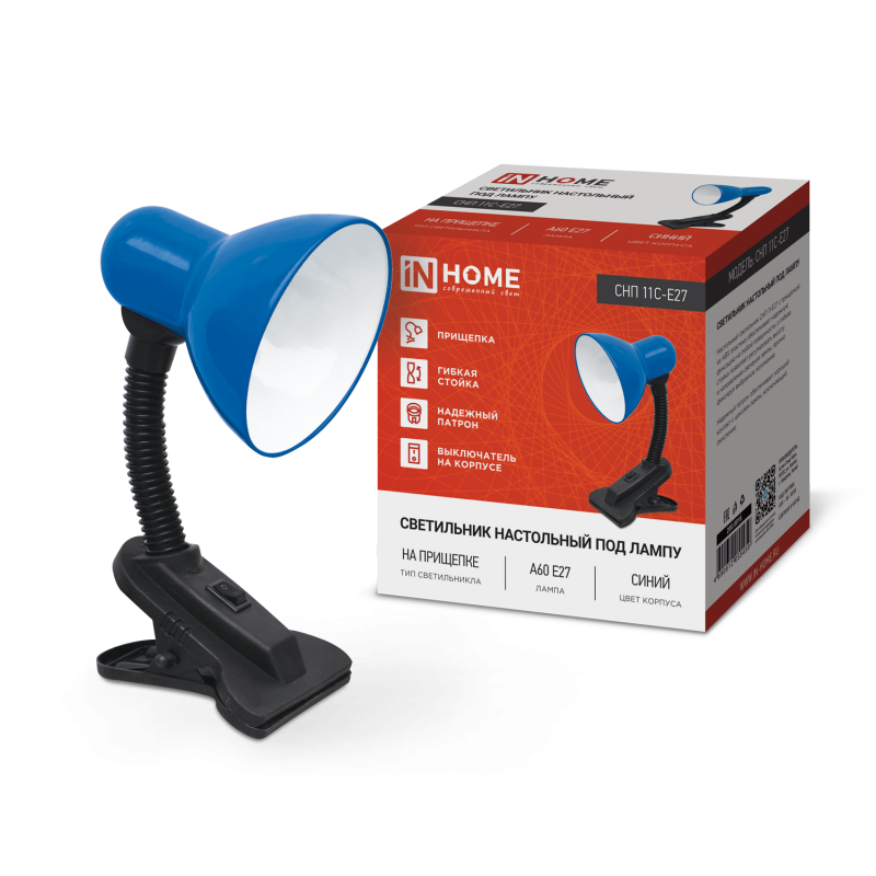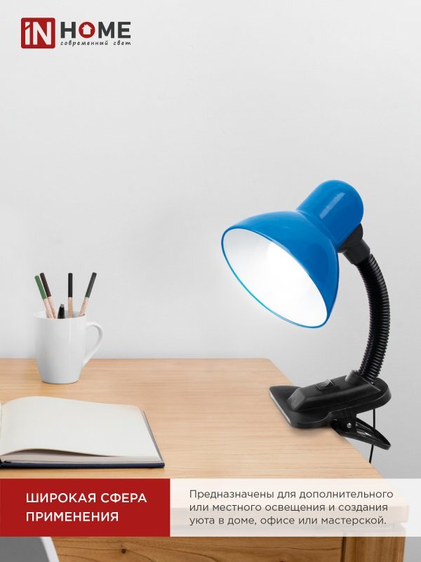 Светильник настольный СНП 11С-E27 под лампу на прищепке син. (кор.) IN HOME 4690612055459