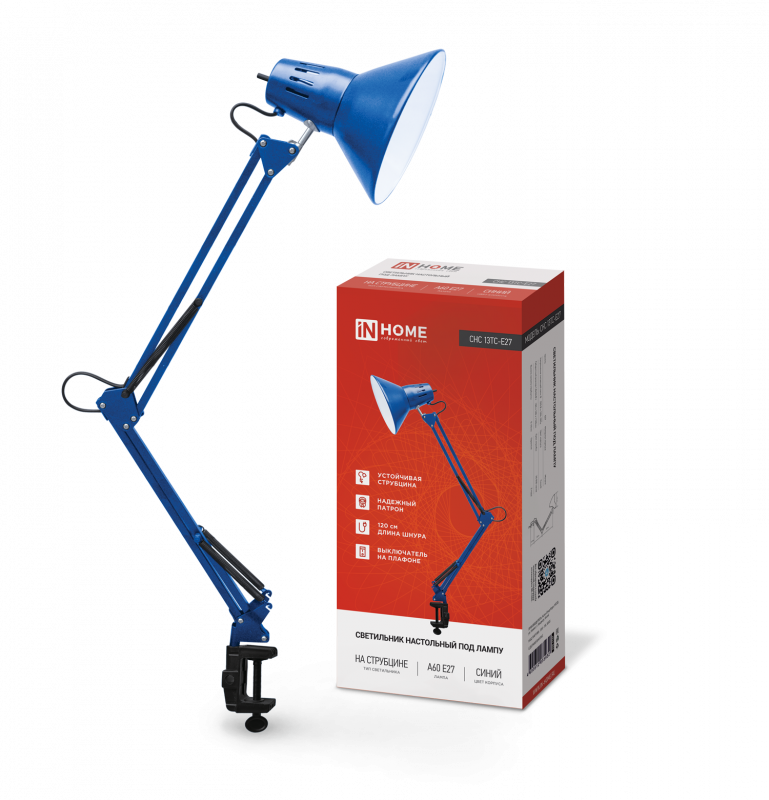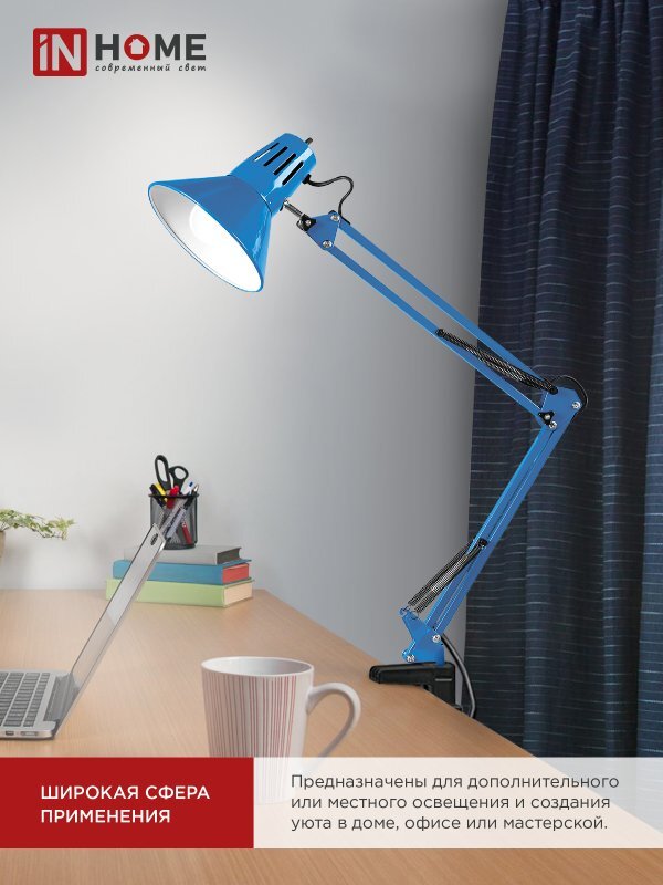 Светильник настольный СНС 13ТС 60Вт E27 230В под лампу на струбцине син. (кор.) IN HOME 4690612035932
