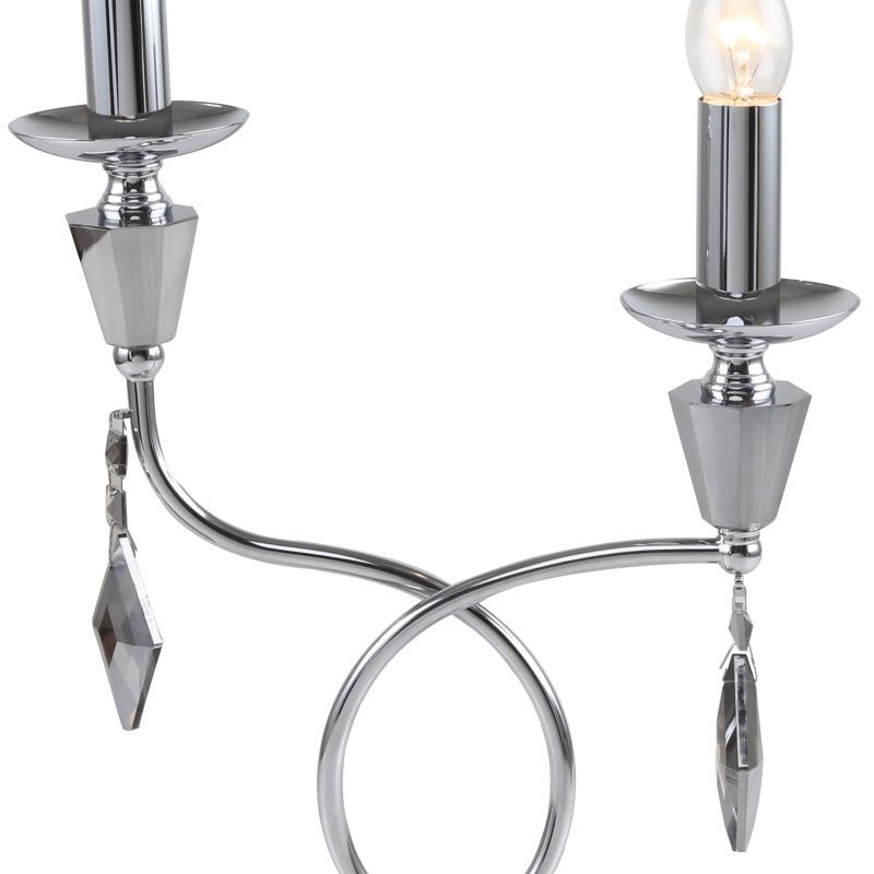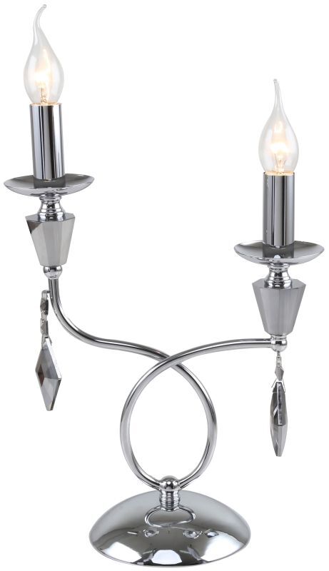 Светильник настольный из коллекции Grace выполнен из металла, гальванизированного в цвет тонированного хрома, и декорирована массивами хрусталя и хрустальными подвесками в форме ромба цвета тонированного хрома. Премиальное качество и неповторимыи? дизаи?н светильников идеально подои?дут как в классические, так и в современные интерьеры.