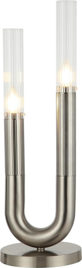 Светильник настольный эксклюзивной коллекции FORTUNA выполнен из металла изогнутой формы, гальванизированного в цвет никеля, и стеклянного плафона линейной текстуры. Светильник данной коллекции очень сложен в изготовлении и только благодаря нашему профессиональному оборудованию мы можем достичь премиальное качество его исполнения и неповторимый дизайн. Светильник идеально впишется в современные и дизайнерские интерьеры.