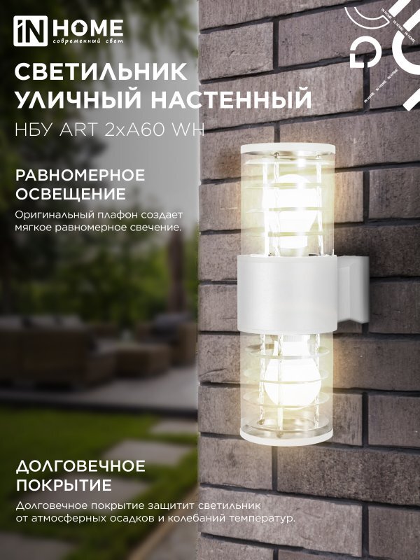 Светильник НБУ ART-2хA60-WH E27 IP54 уличный настен. двусторон. под лампу 2хA60 алюм. бел. IN HOME 4690612051819