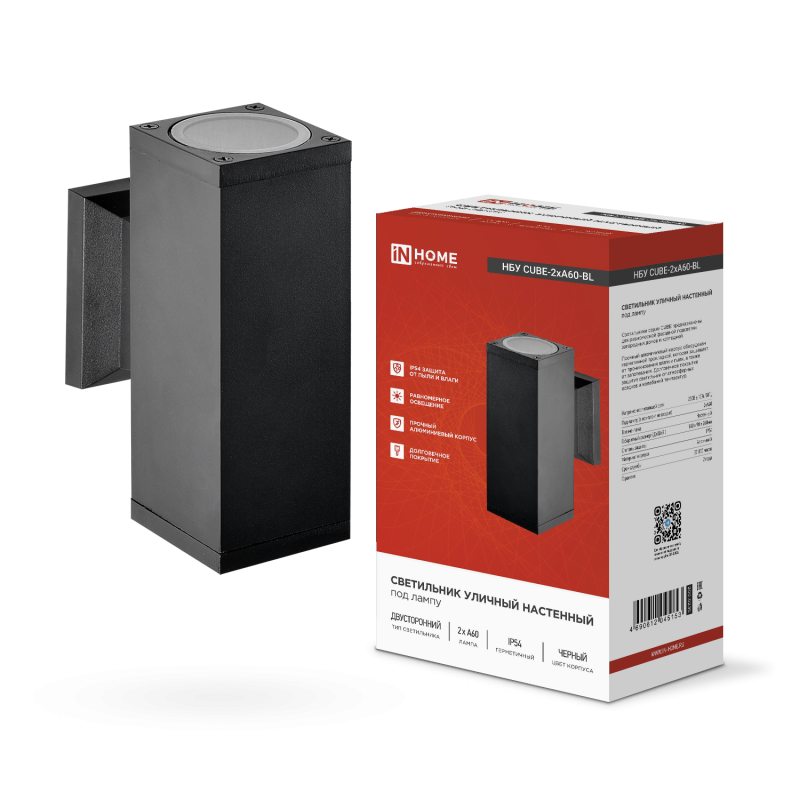 Светильник НБУ CUBE-2хA60-BL E27 IP65 уличный настен. двусторон. под лампу 2хA60 алюм. черн. IN HOME 4690612045153