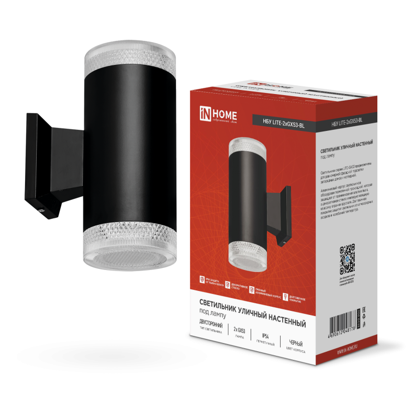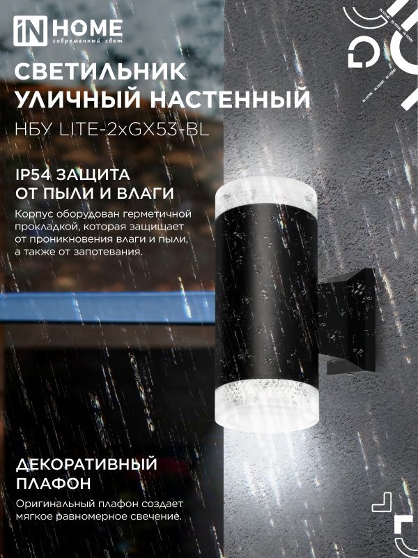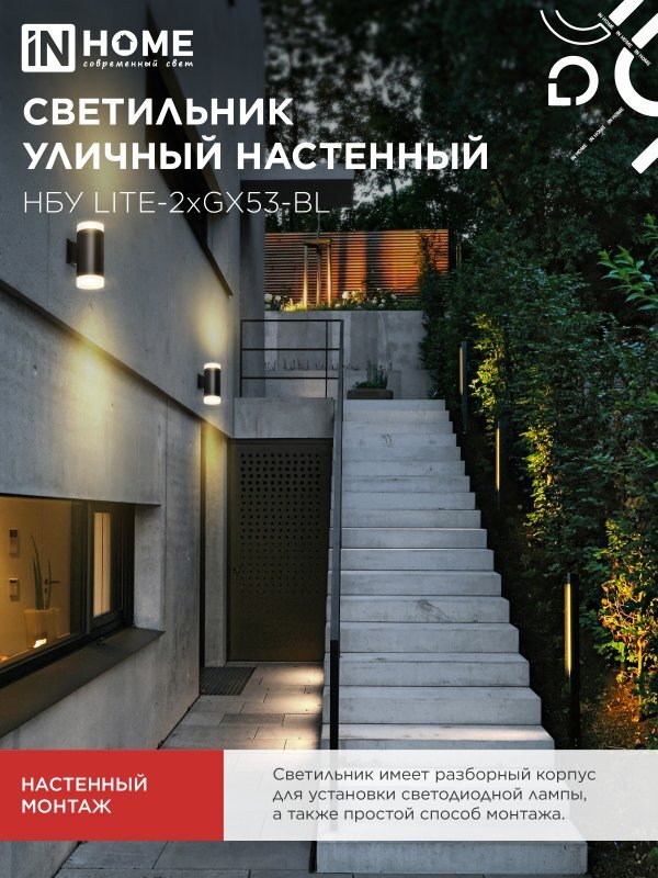 Светильник НБУ LITE-2xGX53-BL IP65 уличный настен. двусторон. под лампу 2хGX53 алюм. черн. IN HOME 4690612048178