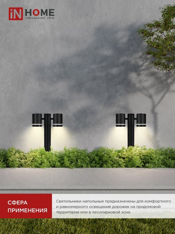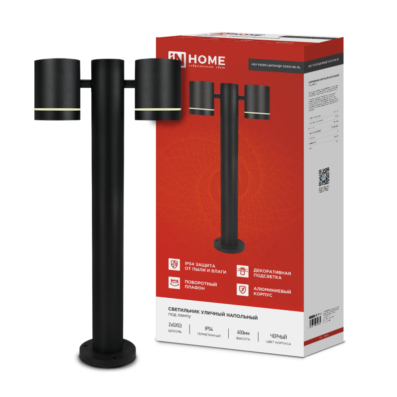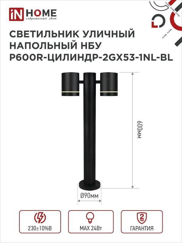 Светильник НБУ P600R-ЦИЛИНДР-2GX53-NL-BL IP65 600мм уличный напольн. под лампу GX53 алюм. черн. IN HOME 4690612052939