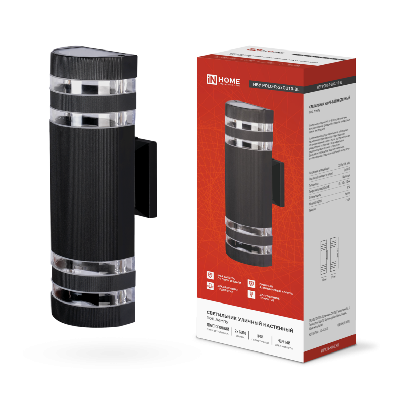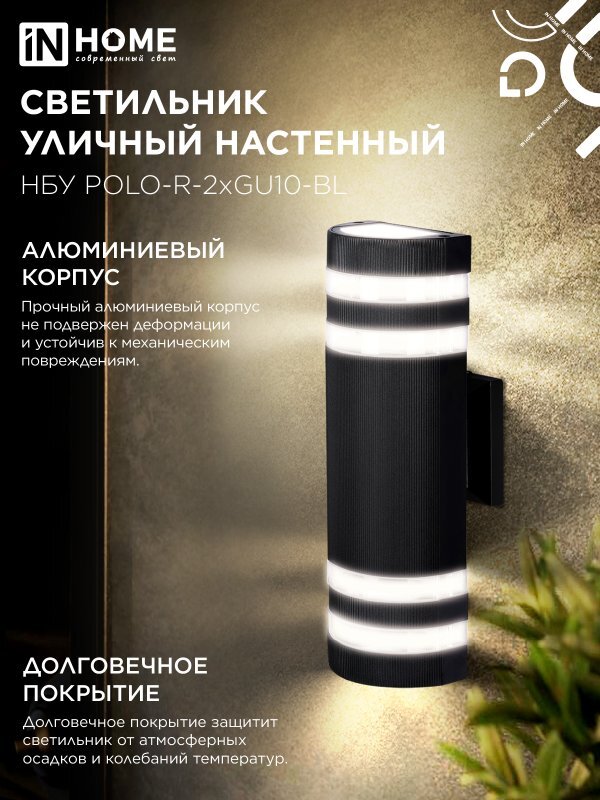 Светильник НБУ POLO-R-2хGU10-BL IP54 уличный настен. двусторон. алюм. черн. IN HOME 4690612055800