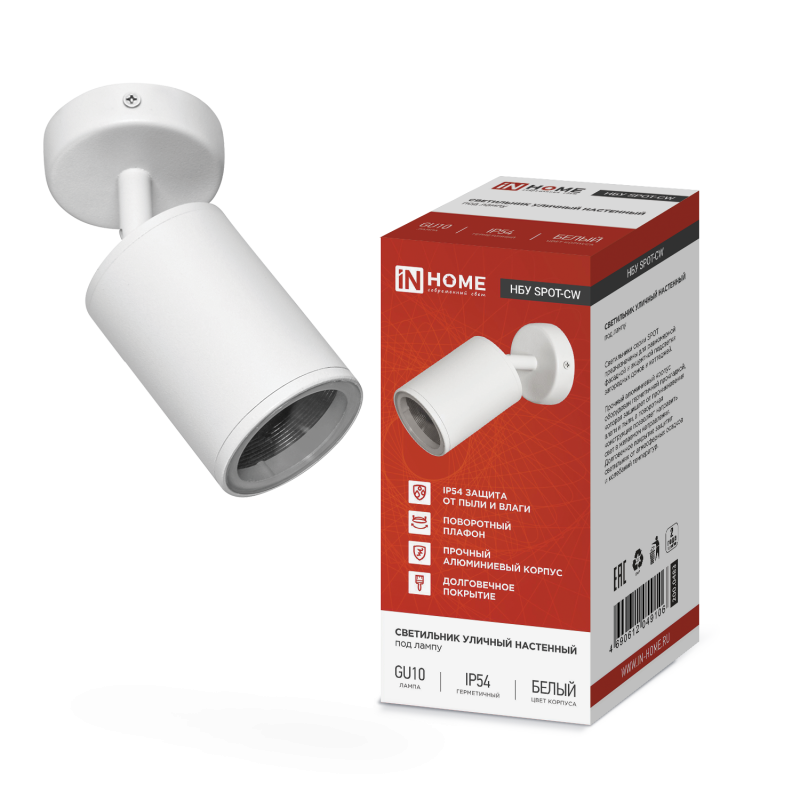 Светильник НБУ SPOT-CW IP65 230В уличный под лампу GU10 на основании алюм. бел. IN HOME 4690612049106