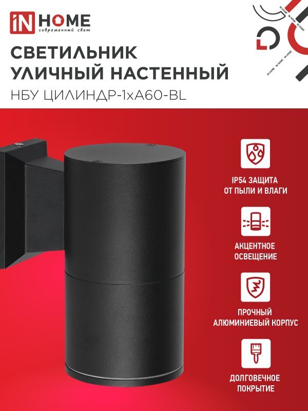 Светильник НБУ ЦИЛИНДР-1хA60-BL IP54 уличный настен. односторон. алюм. черн. IN HOME 4690612059327
