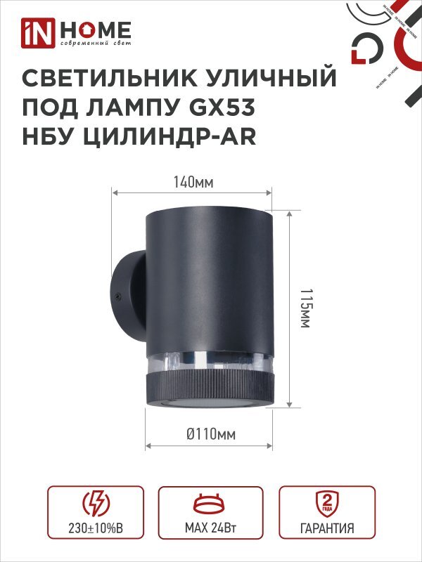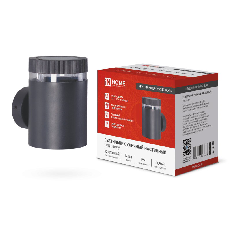 Светильник НБУ ЦИЛИНДР-1хGX53-BL-AR IP65 уличный настен. односторон. под лампу 1хGX53 алюм. черн. IN HOME 4690612044668