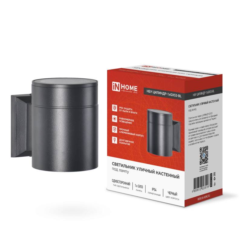 Светильник НБУ ЦИЛИНДР-1xGX53-BL 16Вт IP54 230В уличный настен. односторон. под лампу 1хGX53 алюм. черн. IN HOME 4690612023519