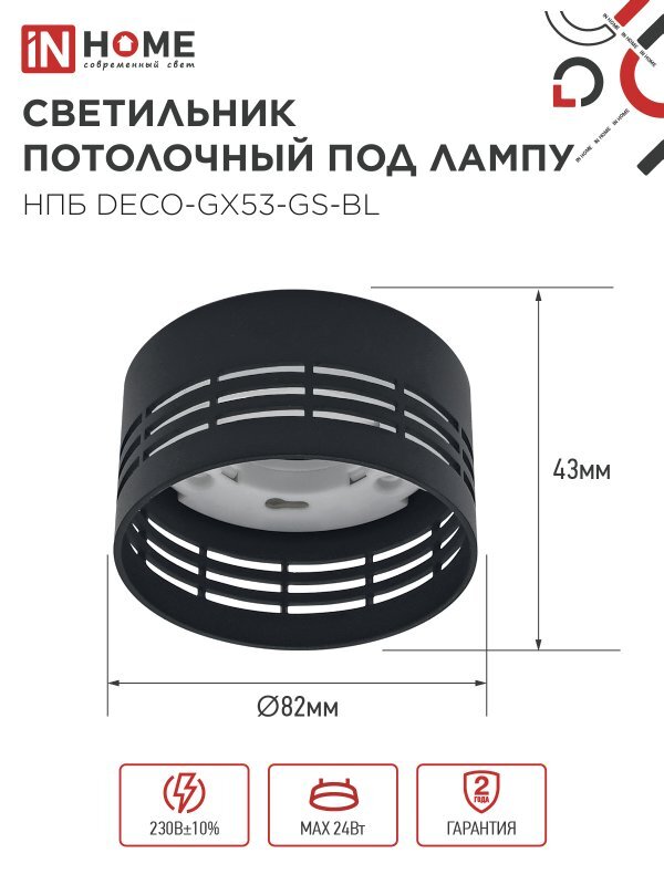 Светильник НПБ DECO-GX53-GS-BL 82х43мм потолочн. под лампу GX53 черн. IN HOME 4690612046372