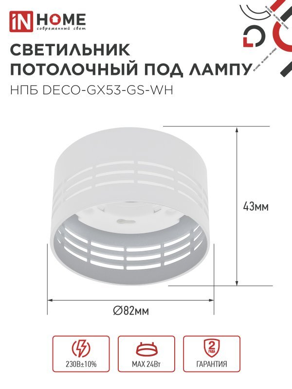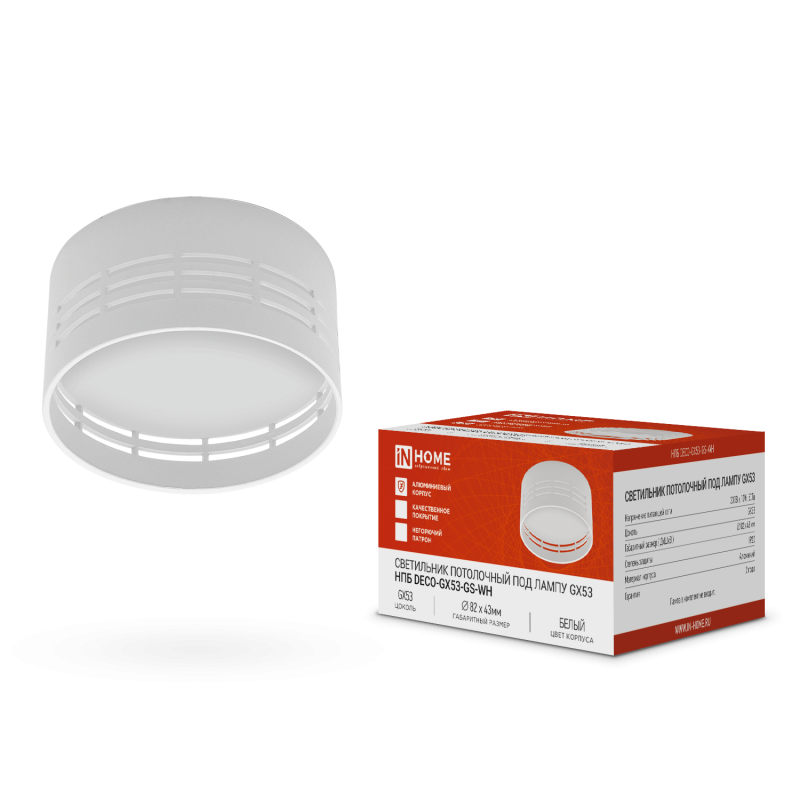 Светильник НПБ DECO-GX53-GS-WH 82х43мм потолочн. под лампу GX53 бел. IN HOME 4690612046365