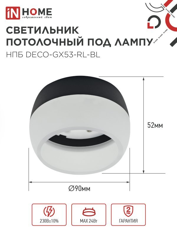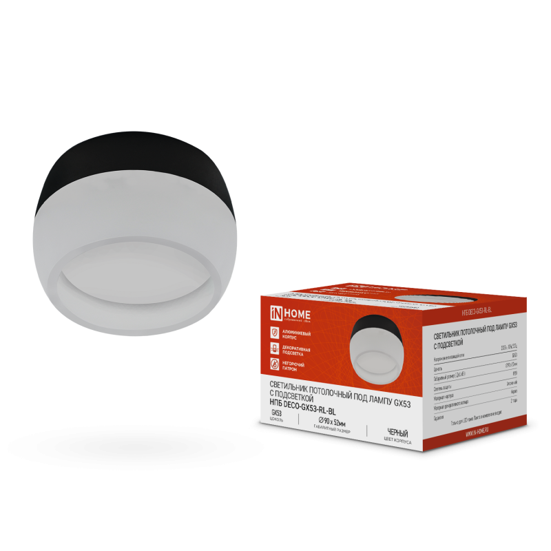 Светильник НПБ DECO-GX53-RL-BL 90х52мм потолочн. под лампу GX53 черн. IN HOME 4690612046433