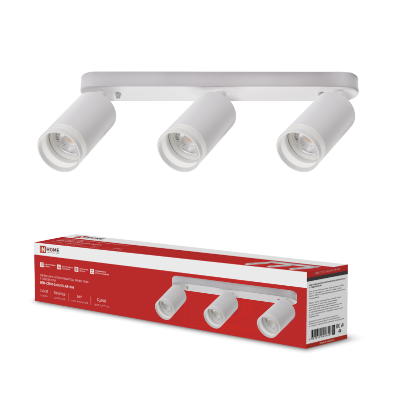 Светильник НПБ СПОТ-3xGU10-AR-WH 56х165х350мм потолочн. под лампу GU10 бел. IN HOME 4690612045849