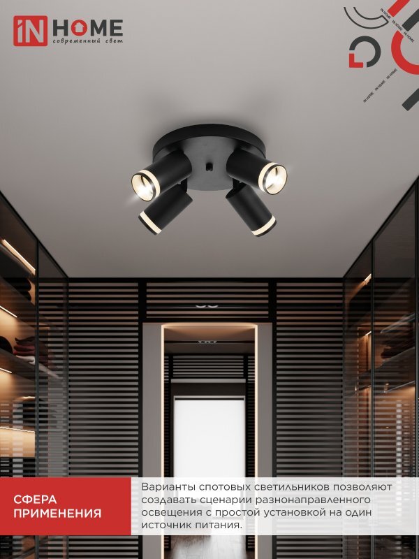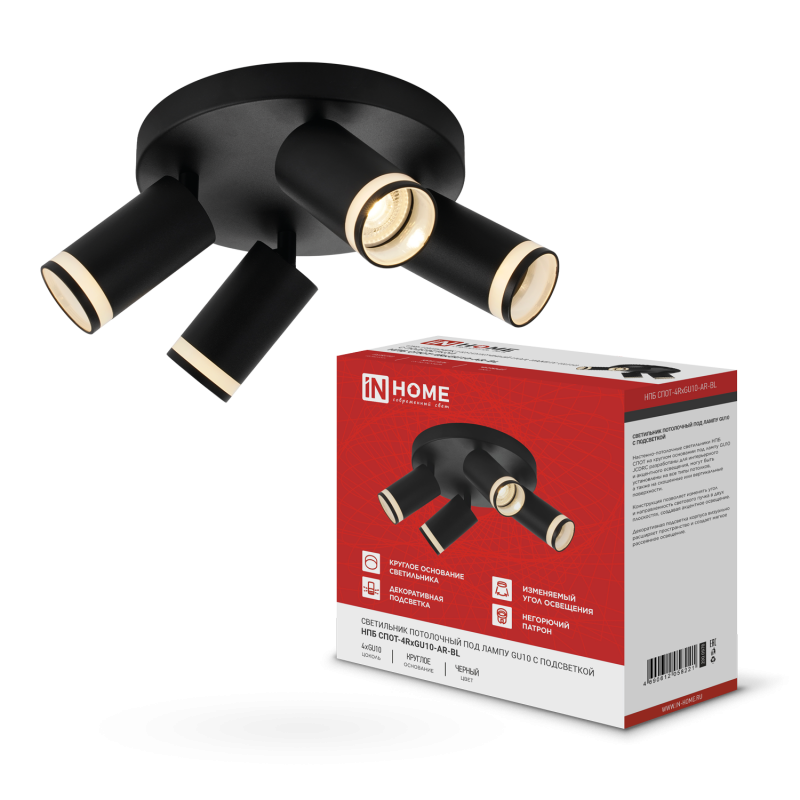 Светильник НПБ СПОТ-4RxGU10-AR-BL потолочн. под GU10 с круглой базой черн. IN HOME 4690612058221