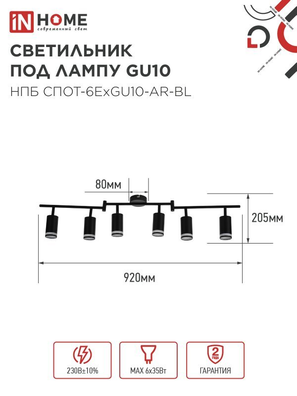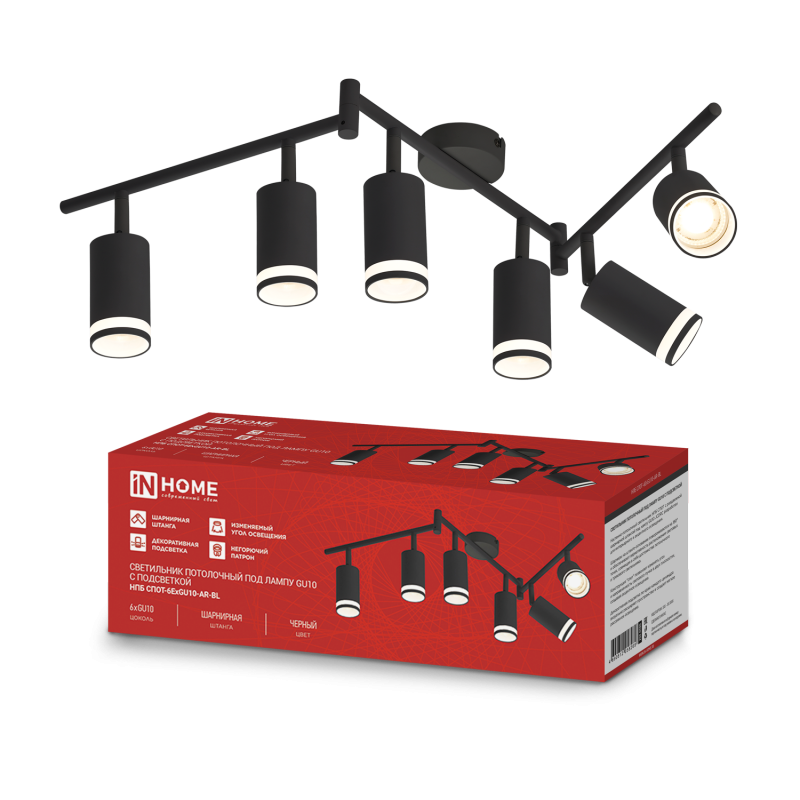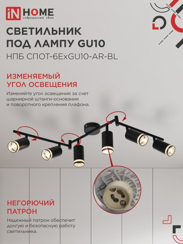 Светильник НПБ СПОТ-6ExGU10-AR-BL потолочн. под GU10 с регулир. базой черн. IN HOME 4690612058269