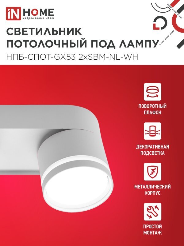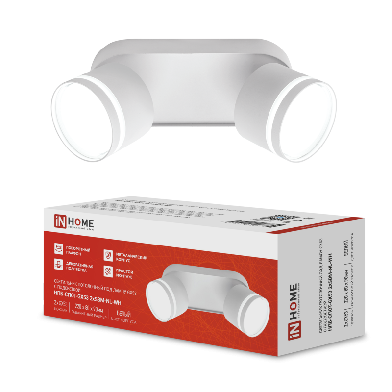 Светильник НПБ-СПОТ-Gх53 2хSBM-NL-WH 220х80х90мм потолочн. с подсветкой бел. IN HOME 4690612052267