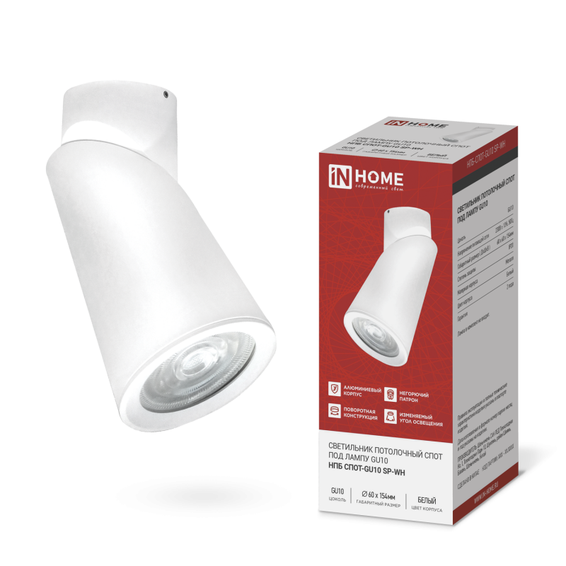Светильник НПБ-СПОТ-GU10 SP-WH 60х154мм потолочн. бел. IN HOME 4690612056623