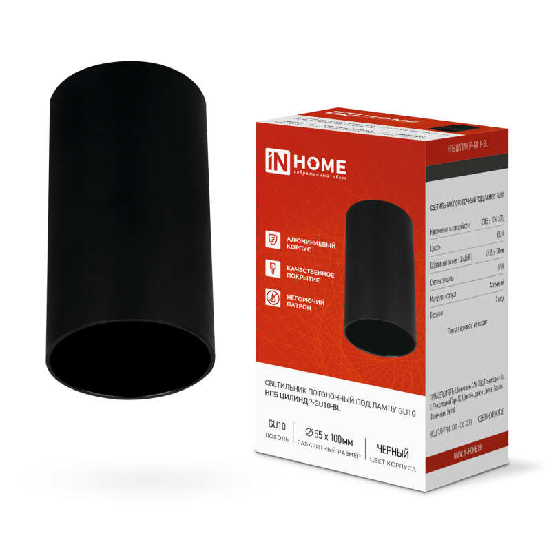 Светильник НПБ ЦИЛИНДР-GU10-BL 55х100мм потолочн. под лампу GU10 черн. IN HOME 4690612046457