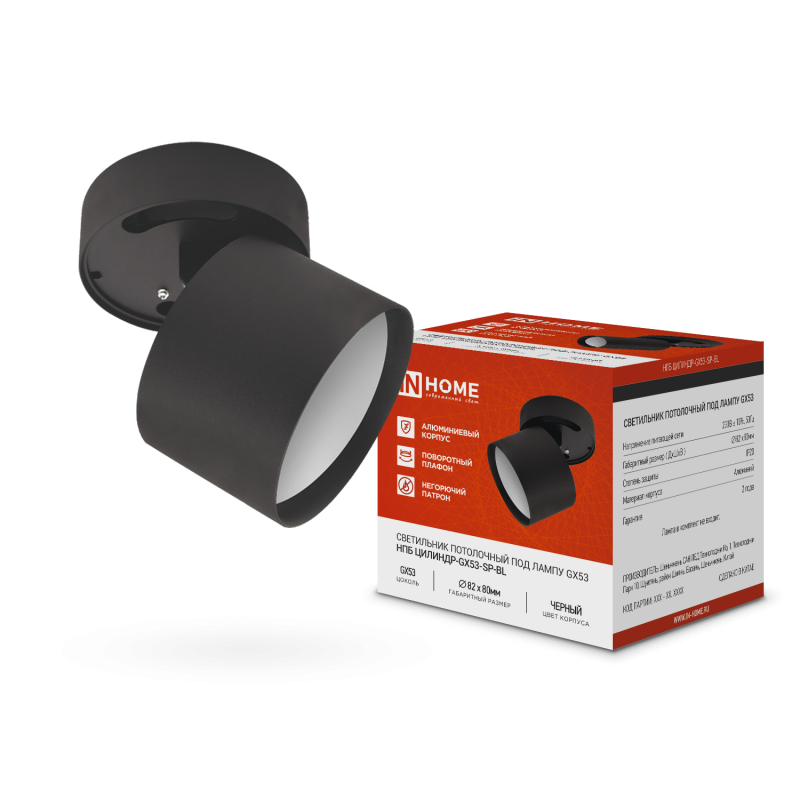 Светильник НПБ ЦИЛИНДР-GX53-SP-BL 82х80мм потолочн. под лампу GX53 черн. IN HOME 4690612046310