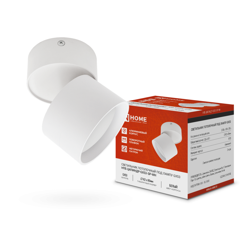 Светильник НПБ ЦИЛИНДР-GX53-SP-WH 82х80мм потолочн. под лампу GX53 бел. IN HOME 4690612046303