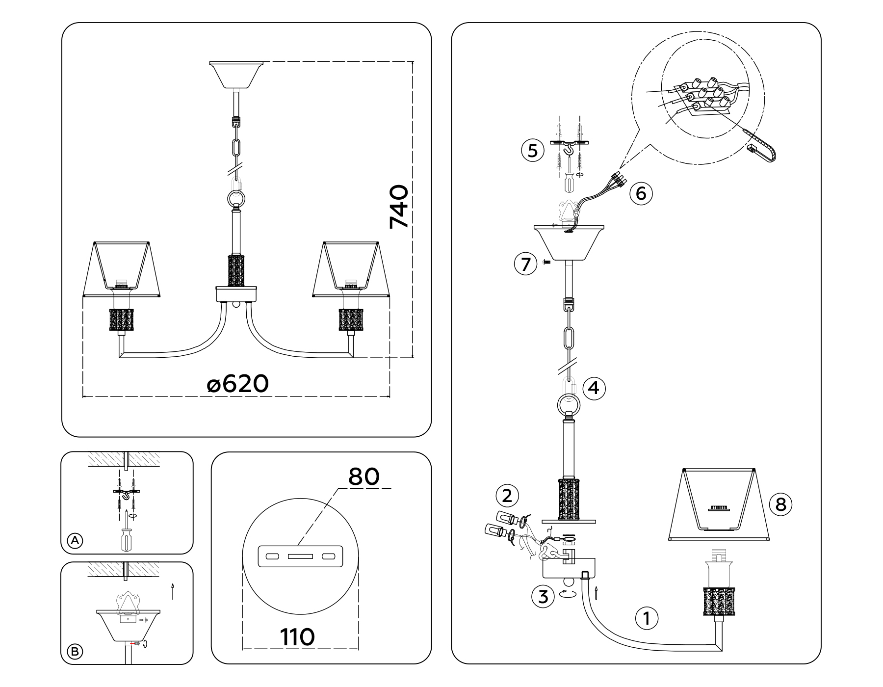 Светильник подвесной LH71214/5 CGD золото E14/5 max 40W D620*740